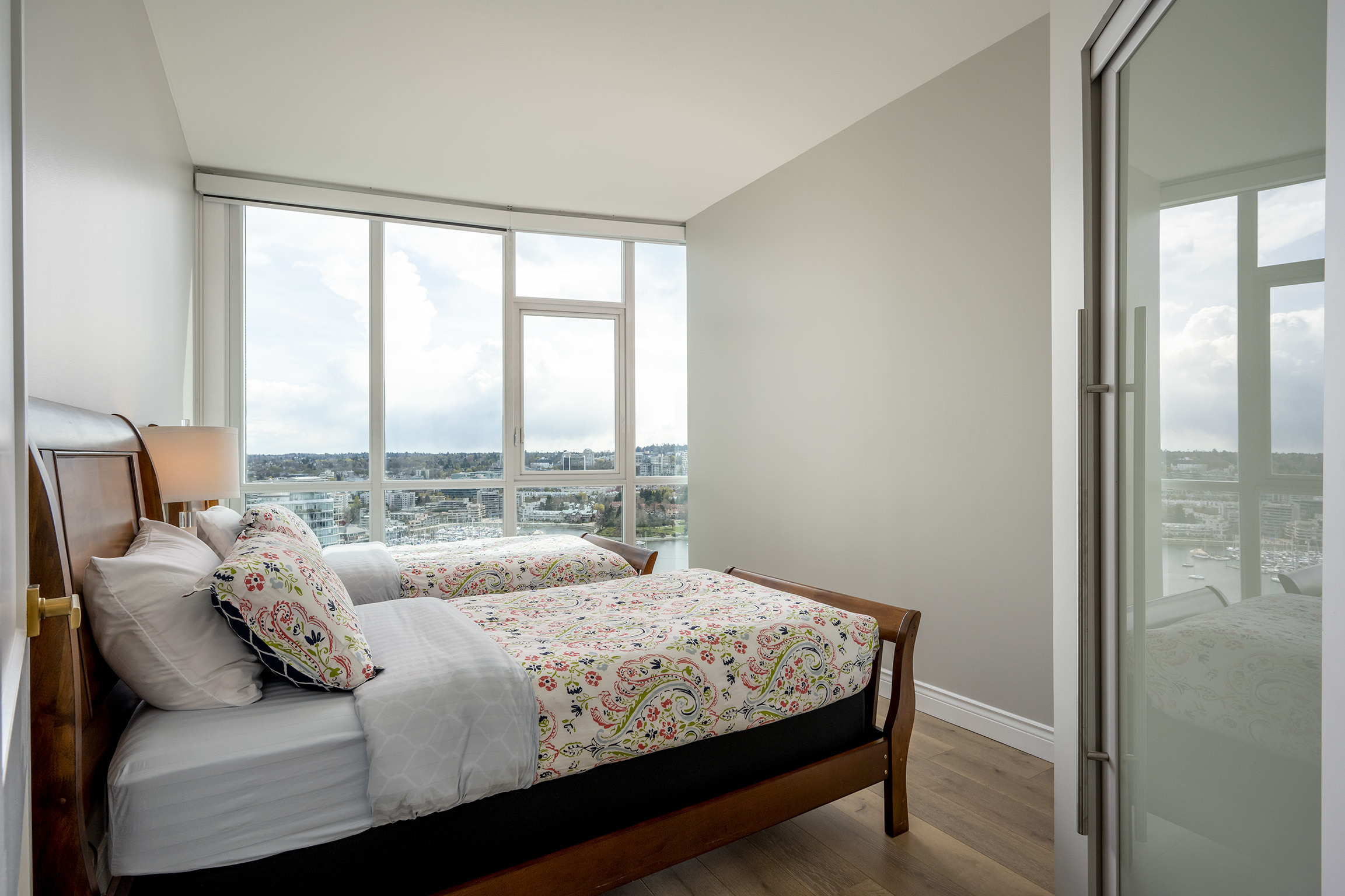 Fantastische Lage im Herzen von Vancouver. Sie werden diese 2500 Quadratmeter große Eigentumswohnung mit Aussicht von jedem Schlafzimmer aus lieben. Komplett möbliert und mit allen Annehmlichkeiten ausgestattet. 2 Hauptschlafzimmer mit Kingsize-Betten und eigenem Bad. Drittes Schlafzimmer mit zwei Einzelbetten. 1 Fernseher im Hauptbett und 1 Fernseher im Wohnzimmer.